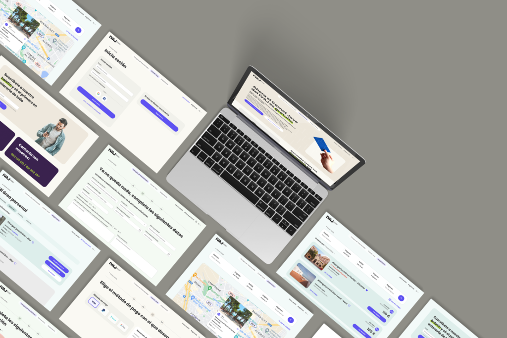 To address this challenge, we developed a clear and logical navigation structure that divided the shop into three main sections: Accommodation, Hostels and Carnet Joven. Each section would have its own set of products and services, making it easy for users to search and select. We then moved on to the creation of wireframes, simple diagrams outlining the layout and basic functionality of each page of the shop. These wireframes allowed us to visualise the information architecture and validate it with users before moving on to the visual design.
